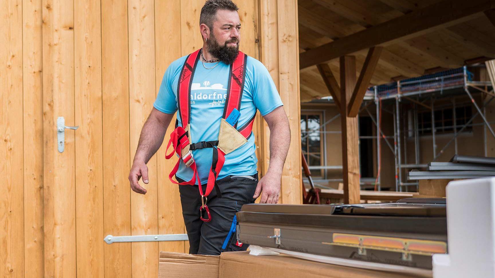 Dakramen snel, veilig en rugvriendelijk naar het dak transporteren - veel van onze klanten en partners dromen hiervan. Voor hen hebben we nu twee nieuwe "collega's" aan het begin, die actief meehelpen op de bouwplaats. Zo vergemakkelijkt de standaard voorgemonteerde kraan en draagband Roto Kurt het transport en de handling, terwijl Karl een nieuw ontwikkelde draagband is die perfect past. Beide samen maken het raamtransport van de nieuwe Roto Designo R6/R8 veel comfortabeler. Met Roto Kurt en Roto Karl in het team kunnen onze klanten en partners moeilijke uitdagingen op bouwplaatsen en in trappenhuizen met gemak en veiligheid aan.