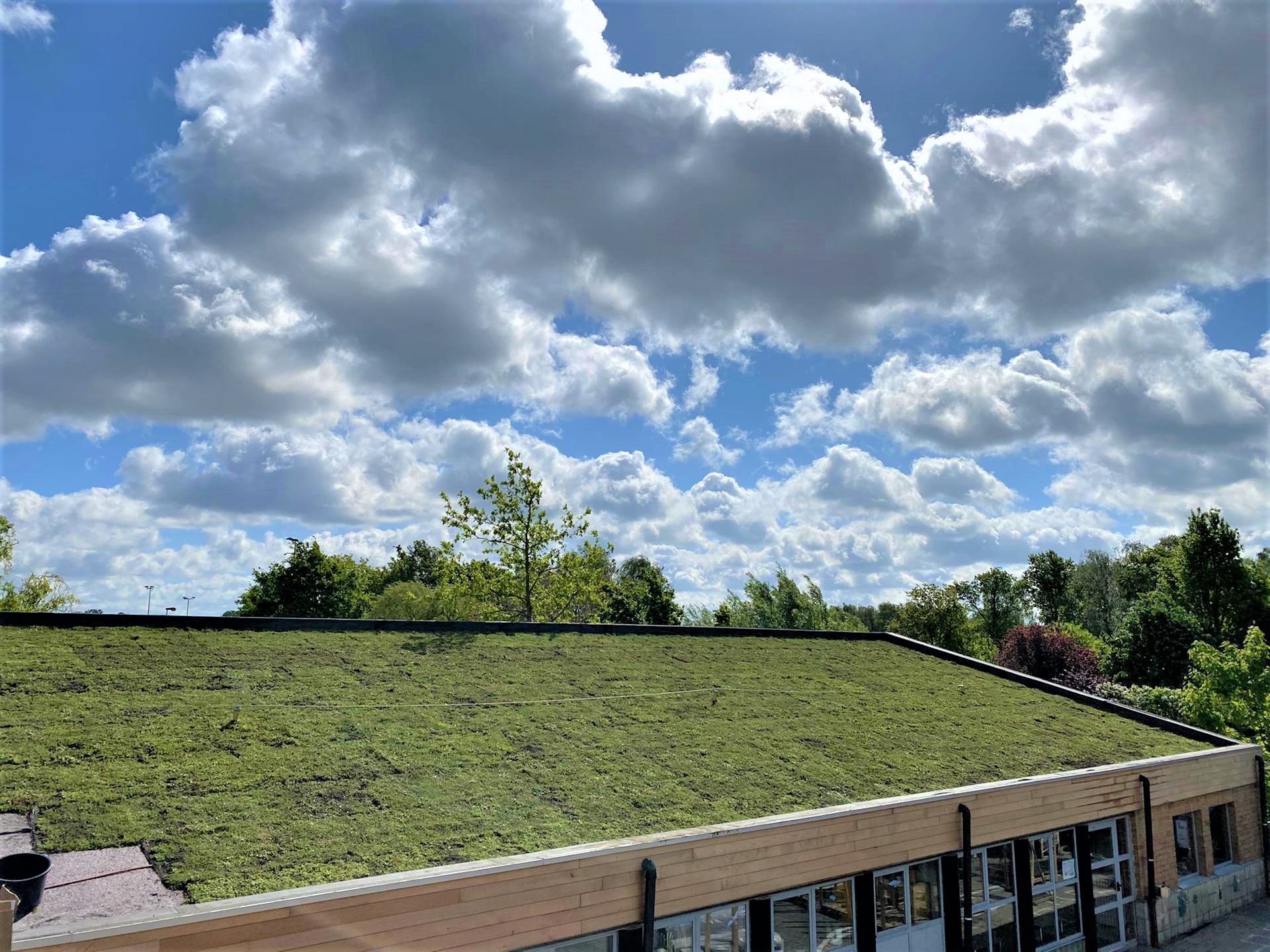 Een groendak verlaagt de temperatuur op het dak. Dankzij dit koelere dak is het rendement van zonnepanelen groter en verlaagt u uw energiekosten.