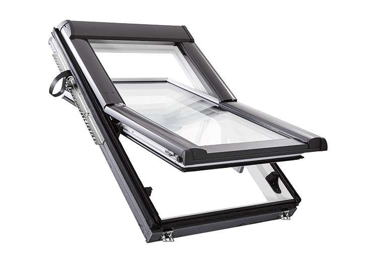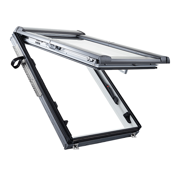 Een snelle en probleemloze vervanging van uw bestaande dakraam - ongeacht de fabrikant, de grootte en het bouwjaar: dat is wat de Designo R6 RotoTronic draaivenster MR. Optimaal ventilatieraam door centraal draaiende raamvleugels. Millimeternauwkeurige productie - precies volgens uw specificaties. Voor toepassingen die moeilijk met de hand te bereiken zijn, hoog in het dak.